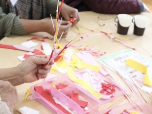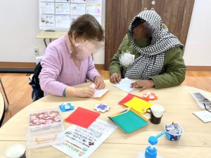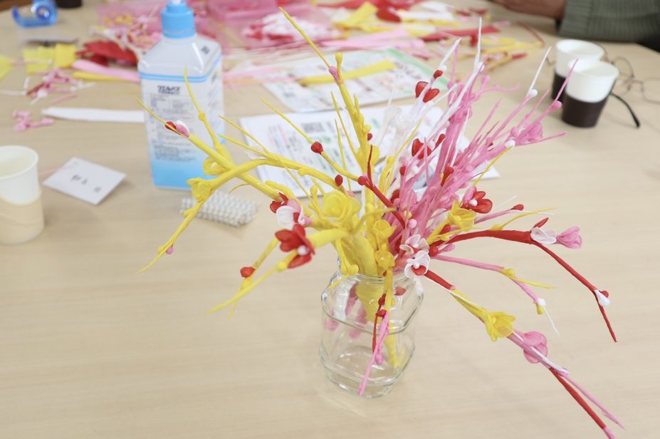 先月と同様、折り紙や梅の飾りは参加者の方々に教えていただきました♪