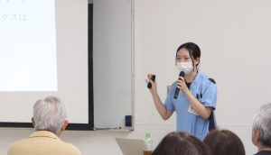 薬剤師からは、そもそもの胃腸の役割や機能、善玉菌や悪玉菌の働きについてお話いたしました。一言で『腸活』といっても、一人ひとりの悩みや状況に合わせた行動が重要です。胃腸のこと、腸内細菌の事を知ってもらって、ご自身にあった『腸活』は、何を中心に行えばよいのかをお伝えいたしました。